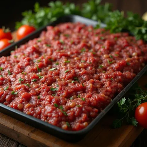 A generous portion of seasoned minced veal prepared Syrian-style. Baked in a large tray β perfect for catering, hosting, or just stocking the fridge. Available by pre-order only.